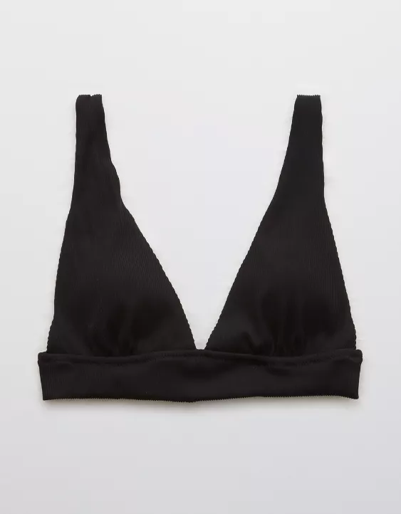 Aerie Ribbed Tie Longline Triangle Bikini Top